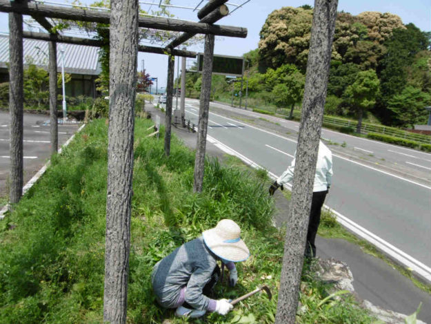 間もなくゴールデンウィークに入りますが、この暑さの中、草刈りをしました。わかりやすいように、草刈り前、草刈り後で比べてみると、