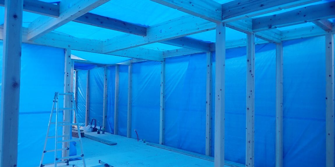ブルーシートで囲っていきます。